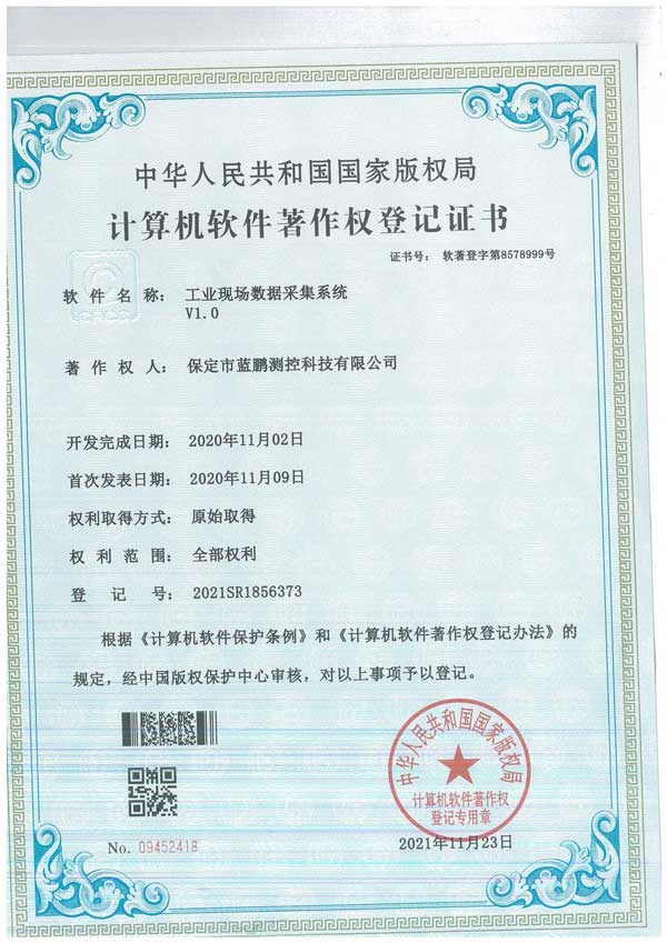 热烈庆祝蓝鹏测控,新一批专利证书申请成功。国家专利局颁发专利证书。