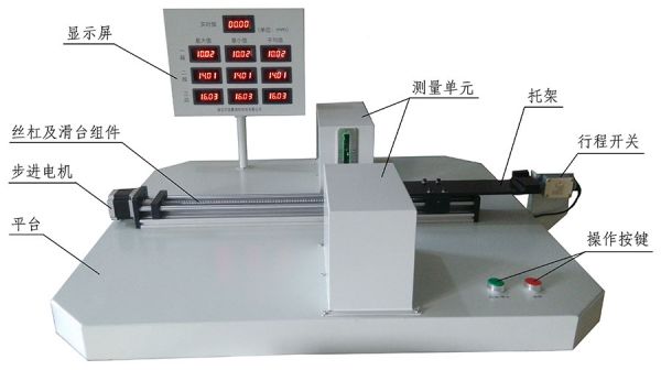 测量时,将胶条及工装放在移动托架上,一次最多可放置3段。然后启动测量,滑台带动移动托架行走对胶条进行扫描测量,扫描完成后设备分别显示并记录3段胶条的最大值、最小值和平均值。胶条老化前后各测量一次,通过两次测量结果的对比判断胶条是否合格。