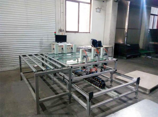 由于地板的长度和宽度规格比较多,而且检测点距离长度方向的两个边缘尺寸不确定。所以,测量设备的各检测点位置应能够自由调整。