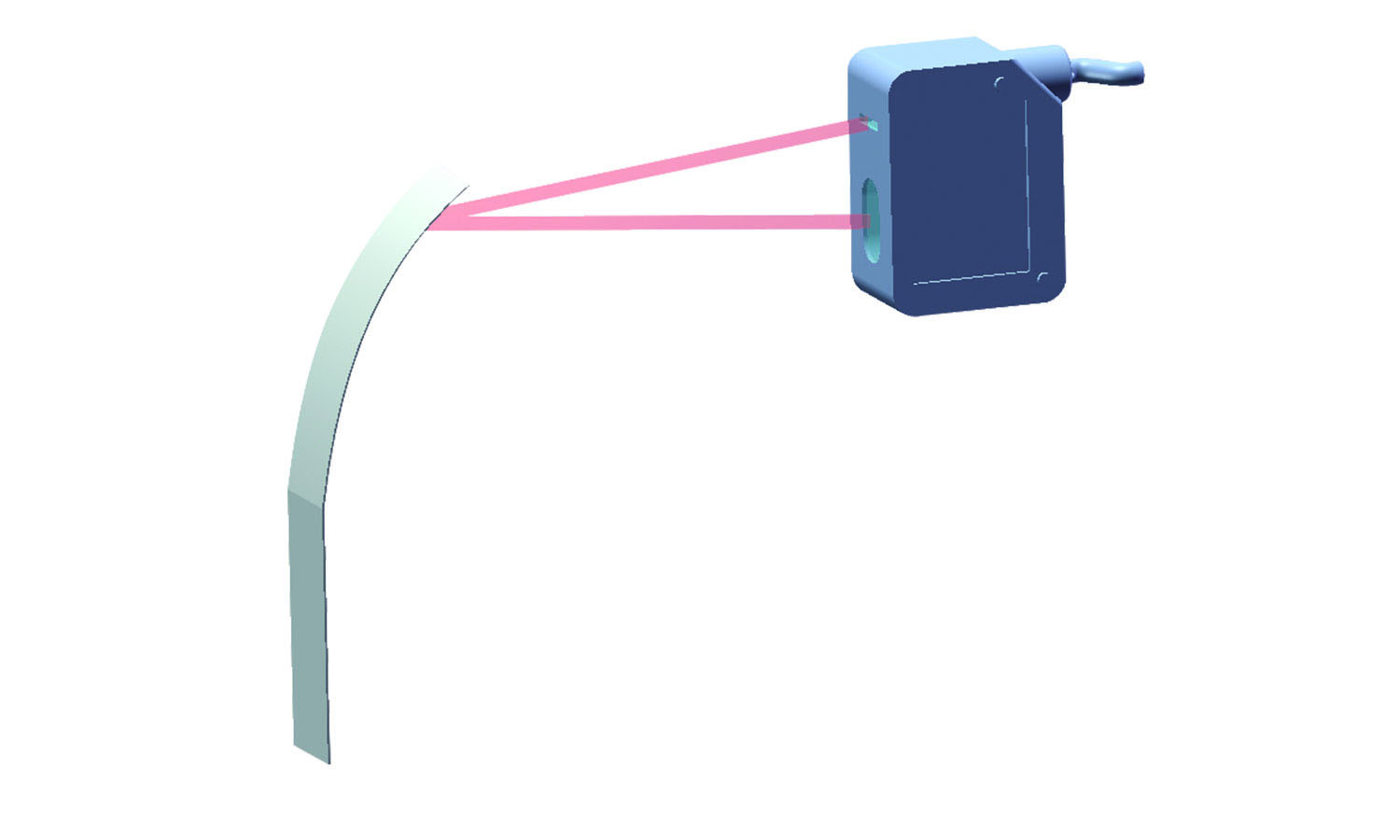 双金属片弯曲度检测仪是我公司为某双金属片厂家生产的专业测量仪器,该仪器仅配置1只激光位移传感器和1台工控机。传感器安装在试验炉外部,透过试验炉视窗玻璃检测双金属片试验时弯曲的头部距离变化。工控机采集传感器测得的距离变化和试验炉内部温度,测量软件根据距离变化和温度实时绘制双金属片的温度性能曲线,计算温度性能K值。
