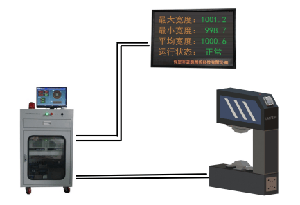 设备采用双测头测宽原理对板材的宽度进行测量,测头竖直布置,可测量板面呈水平状态下通过的板材宽度。测宽仪的双测头有两种形式,当被测物的宽度范围较小时采用固定式双测头;当被测物的宽度范围较大时采用测量范围可调双测头。测宽仪主要配置上位机控制系统、外接LED显示屏、高压离心风机等,可增配嵌入式智能模块。