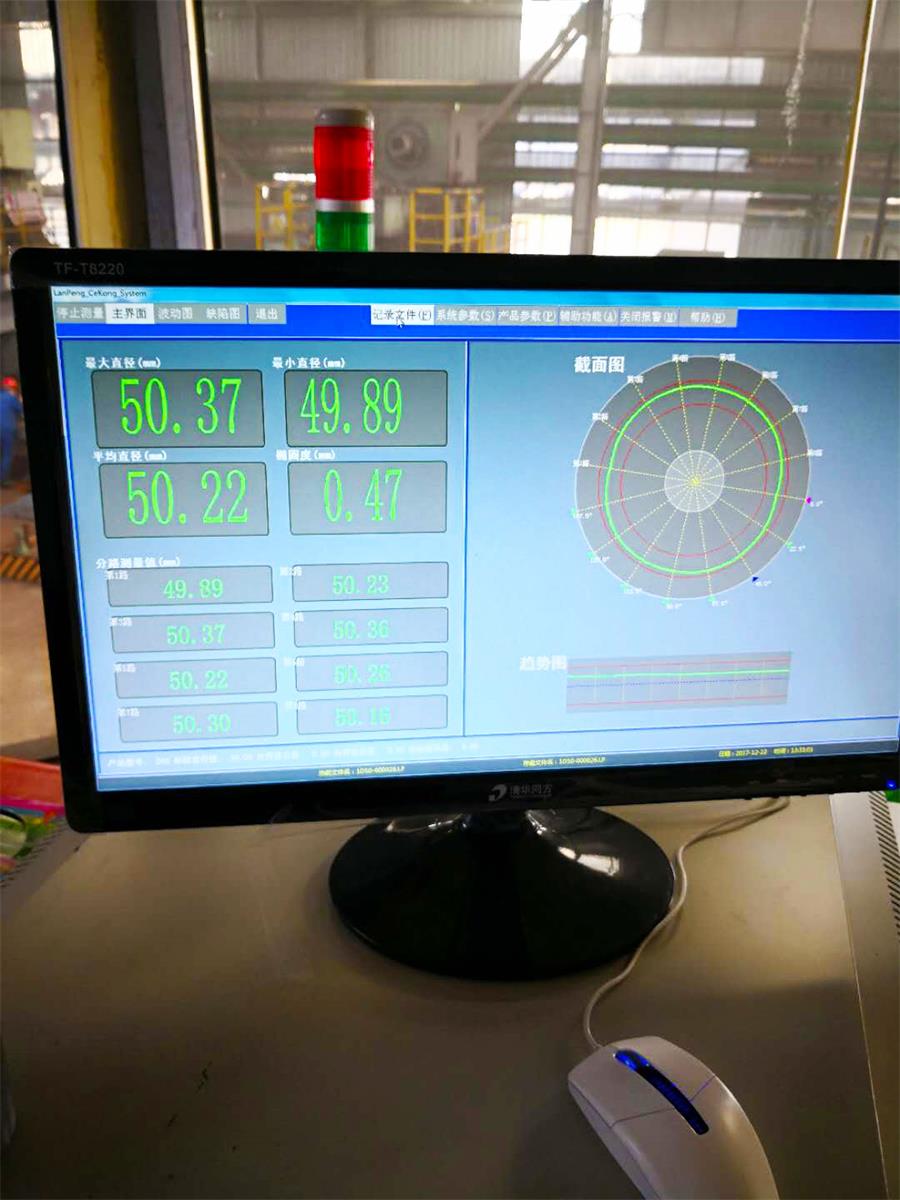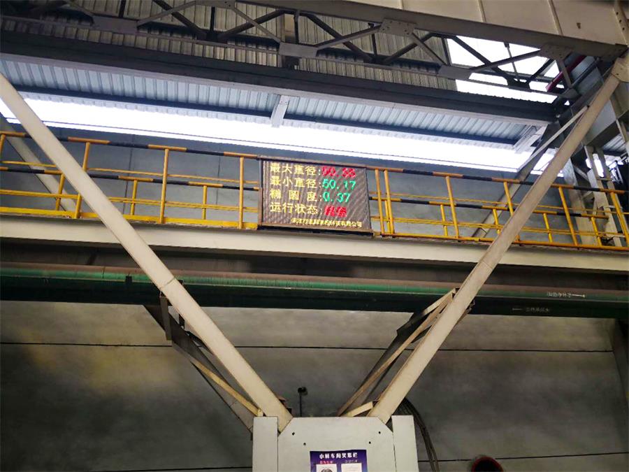 在线测径仪还可对圆钢的常见缺陷进行检测如:“耳子”、“错辊”、“凸块”等,通过使用测径仪,能及时了解钢材尺寸,在超差时会进行声光提示,并改变字体颜色,从而能更及时的调整轧机状态,减少不合格品的生产。并且其获得的数据多,可进行分析存储,对了解分析轧钢情况有着重要意义。